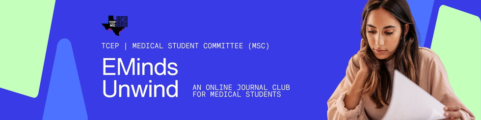 The TCEP Medical Student Committee (TCEP-MSC) hosts a state-wide, virtual monthly journal club called “EMinds Unwind.” This informal, hour-long event will give students the opportunity to discuss journal articles, engage with academic EM, and network with residency programs.